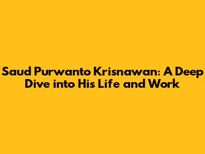 Hey everyone! Today, we're diving deep into the life and career of Saud Purwanto Krisnawan. He's a name that might ring a bell, especially if you're into [related field], but even if you're not, his story is pretty darn interesting. We're going to explore his journey, from his early days to his current endeavors, and try to understand the impact he's made. Let's get started, shall we?