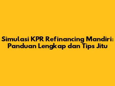 Guys, pengen ngomongin soal KPR refinancing Mandiri nih! Siapa di sini yang udah punya KPR dan pengen ngurangin cicilan atau dapetin keuntungan lain dari KPR-nya? Nah, refinancing ini bisa jadi solusi yang oke banget. Artikel ini bakal ngasih kalian semua informasi yang kalian butuhin, mulai dari apa itu refinancing, kenapa kalian perlu mikirin refinancing KPR Mandiri, sampai gimana cara melakukan simulasi KPR refinancing Mandiri yang tepat. Udah siap buat belajar lebih jauh tentang refinancing? Yuk, kita mulai!