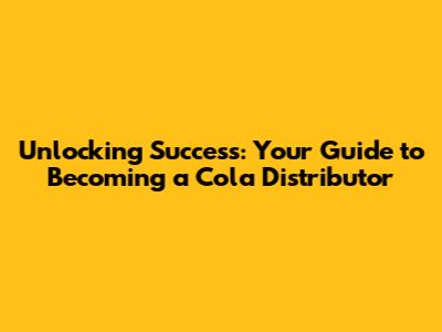 Building Your Cola Distribution Business