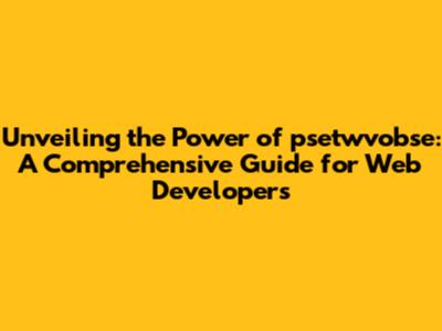 Hey web developers, ever heard of psetwvobse? If you haven't, don't sweat it, because in this article, we're diving deep into what it is, how it rocks the web development world, and how you can wield it like a pro. Think of it as your secret weapon to build amazing websites and applications that truly stand out. This guide will be your go-to resource, covering everything from the basics to some seriously advanced stuff. We'll explore its role in the grand scheme of web development, from enhancing user interfaces to boosting performance. Buckle up, because we're about to embark on an exciting journey to master psetwvobse!