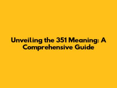 Unveiling The 351 Meaning: A Comprehensive Guide