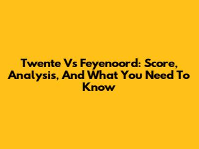 Twente Vs Feyenoord: Score, Analysis, And What You Need To Know