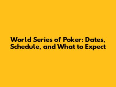 WSOP Dates and Schedule
